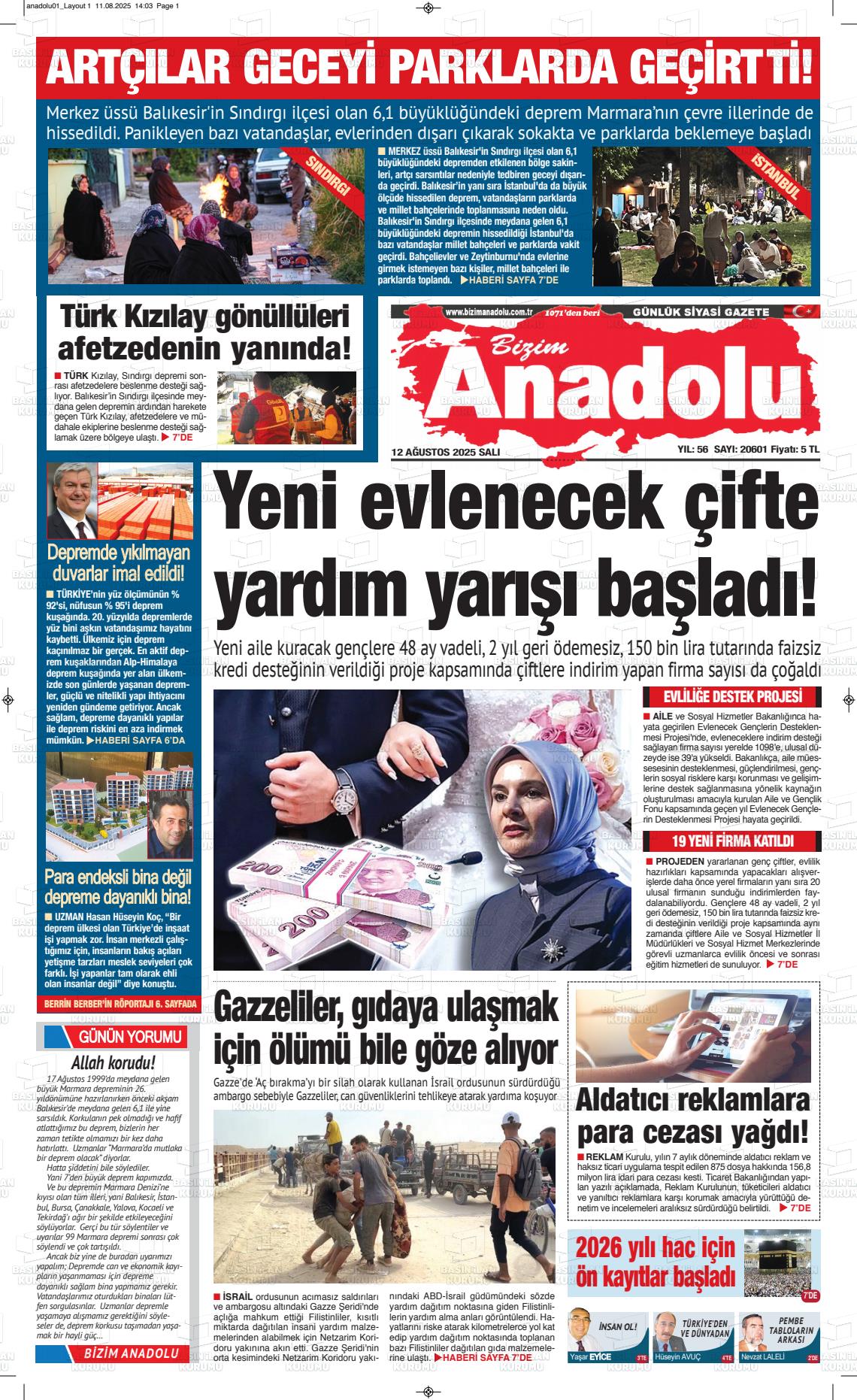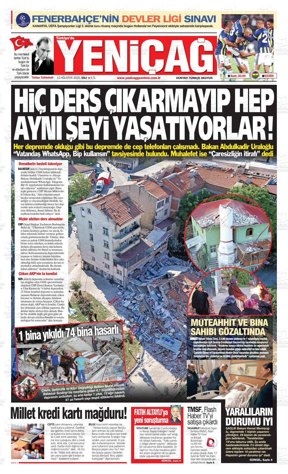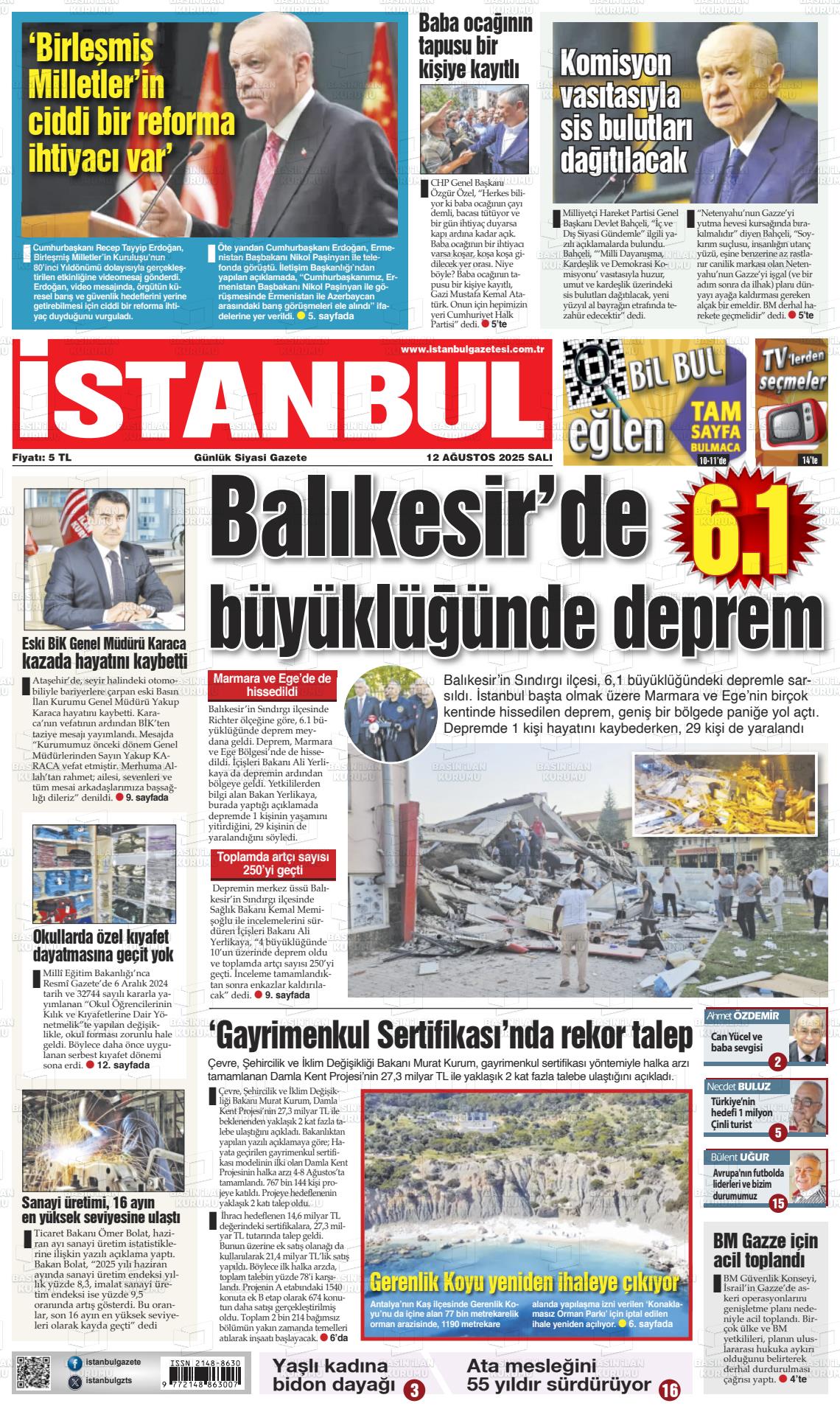 İstanbul Yerel Gazeteleri 14 Aralık 2025, Pazar Günü Manşeti