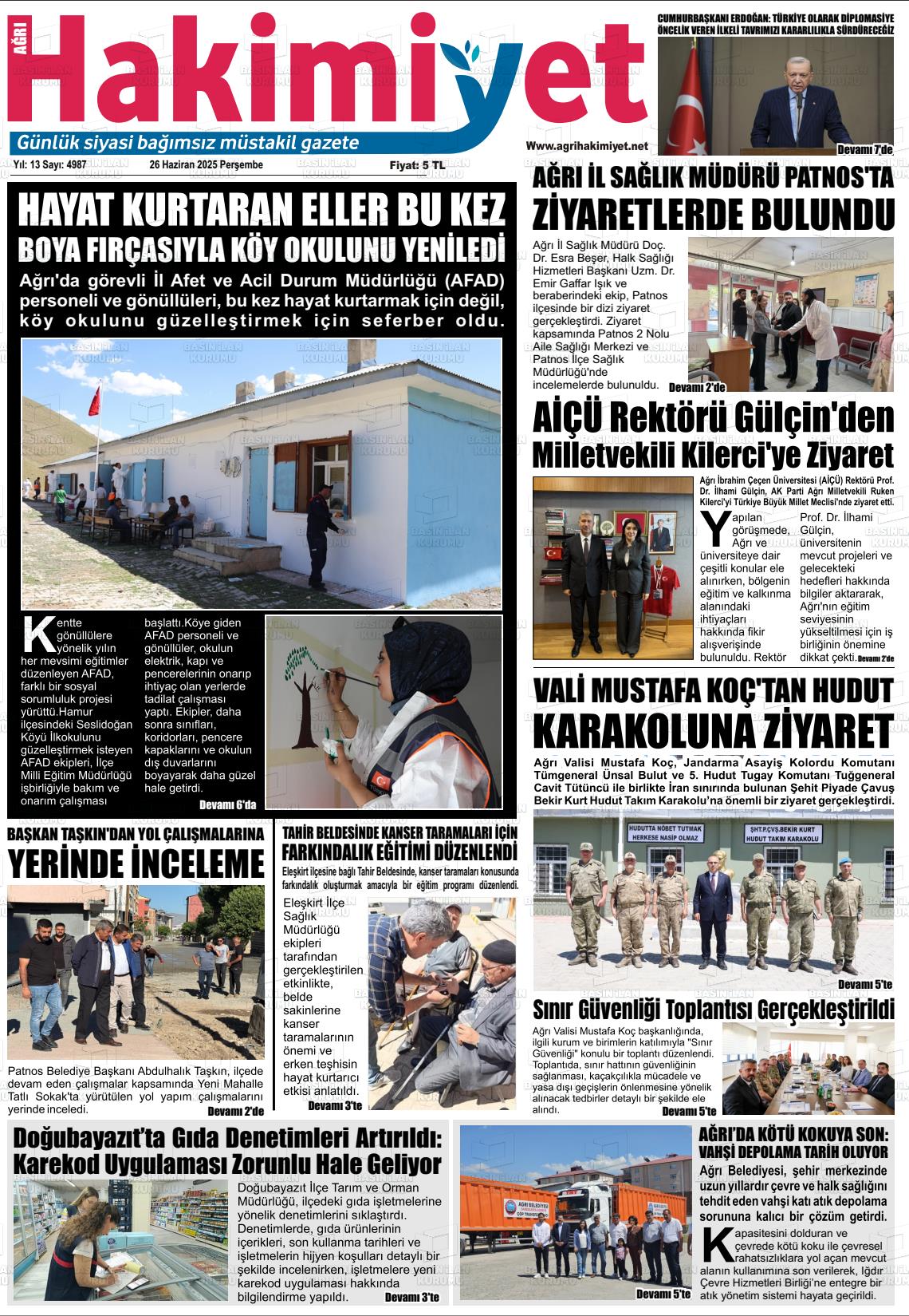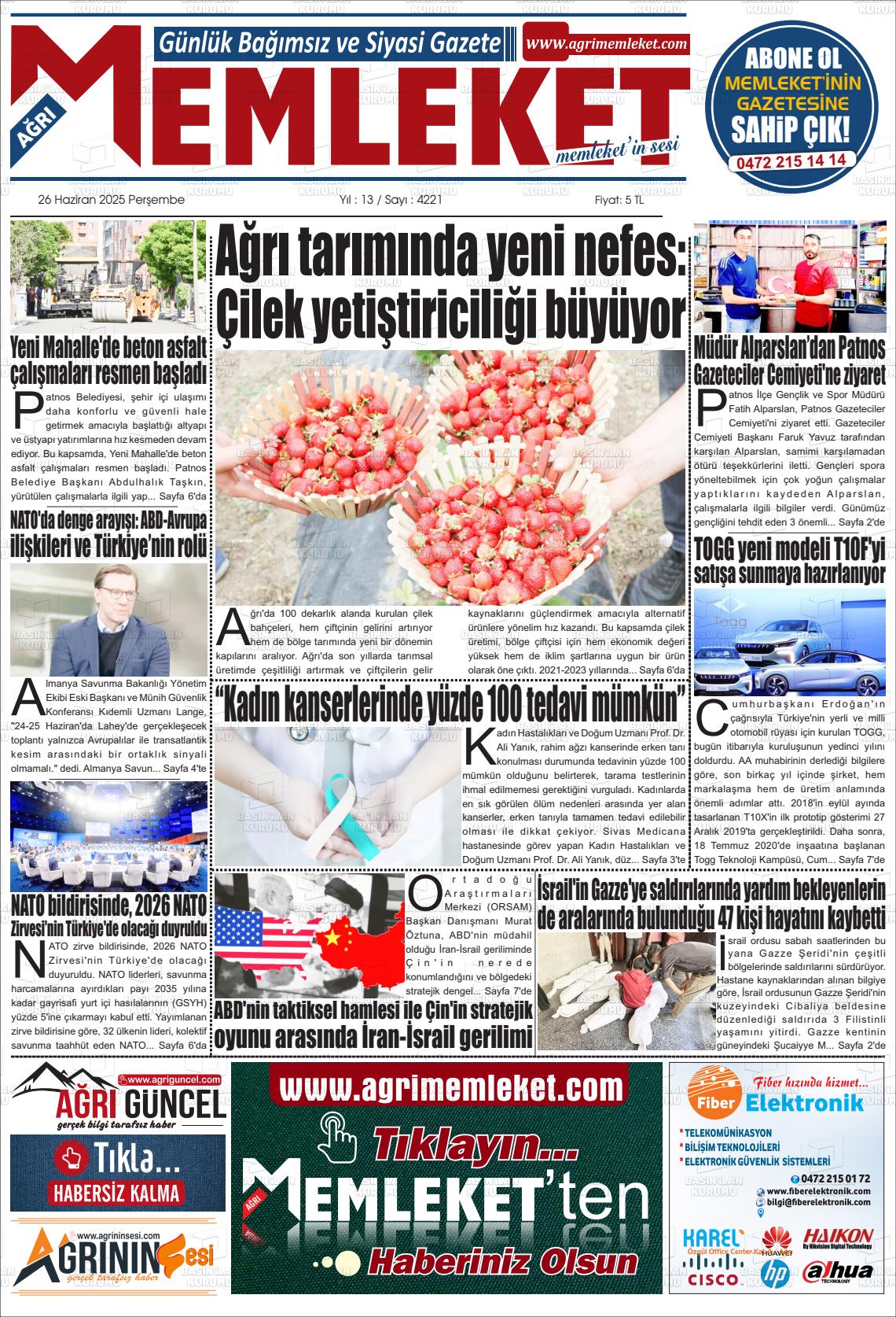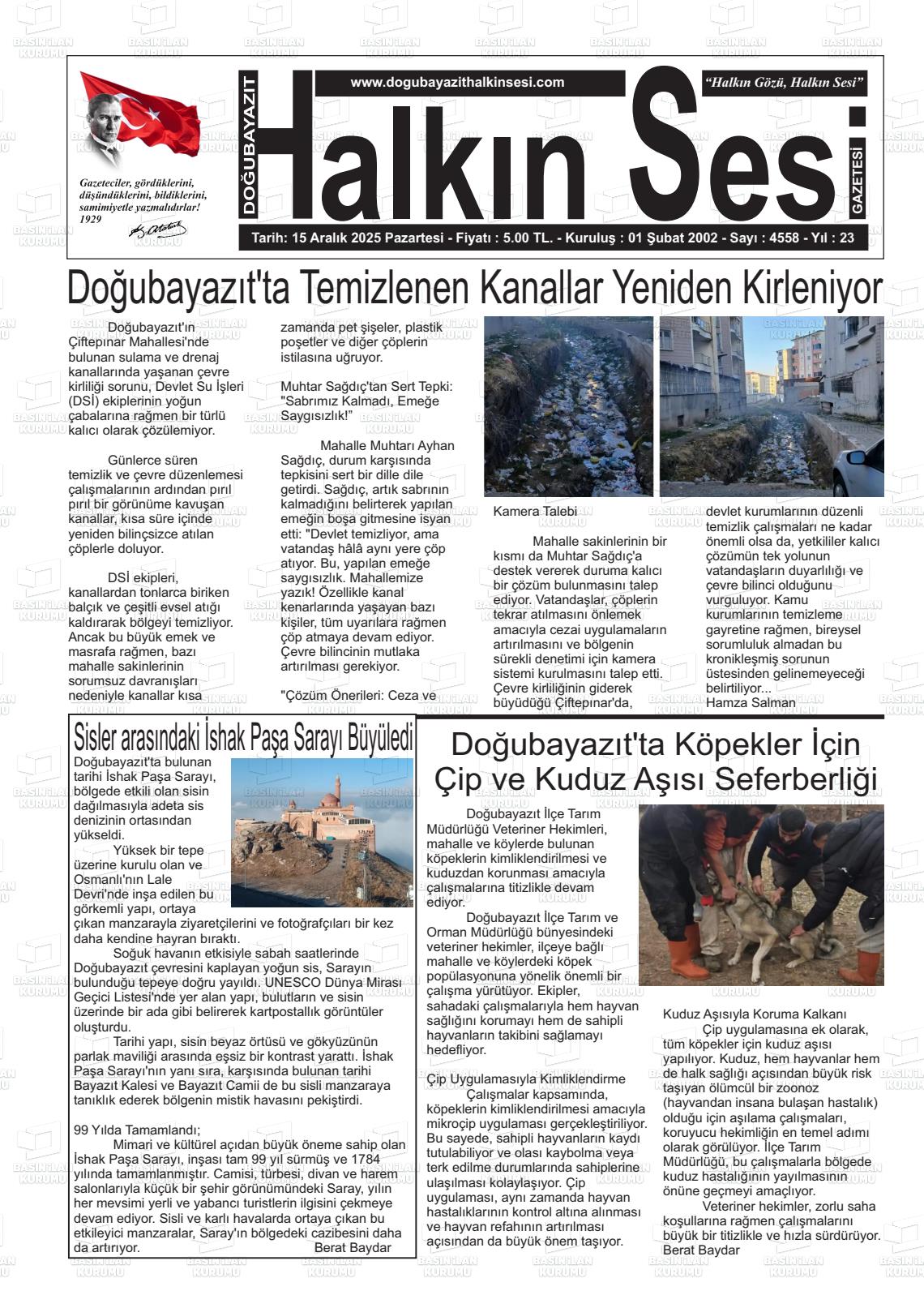 Ağrı Yerel Gazeteleri 15 Aralık 2025, Pazartesi Günü Manşeti