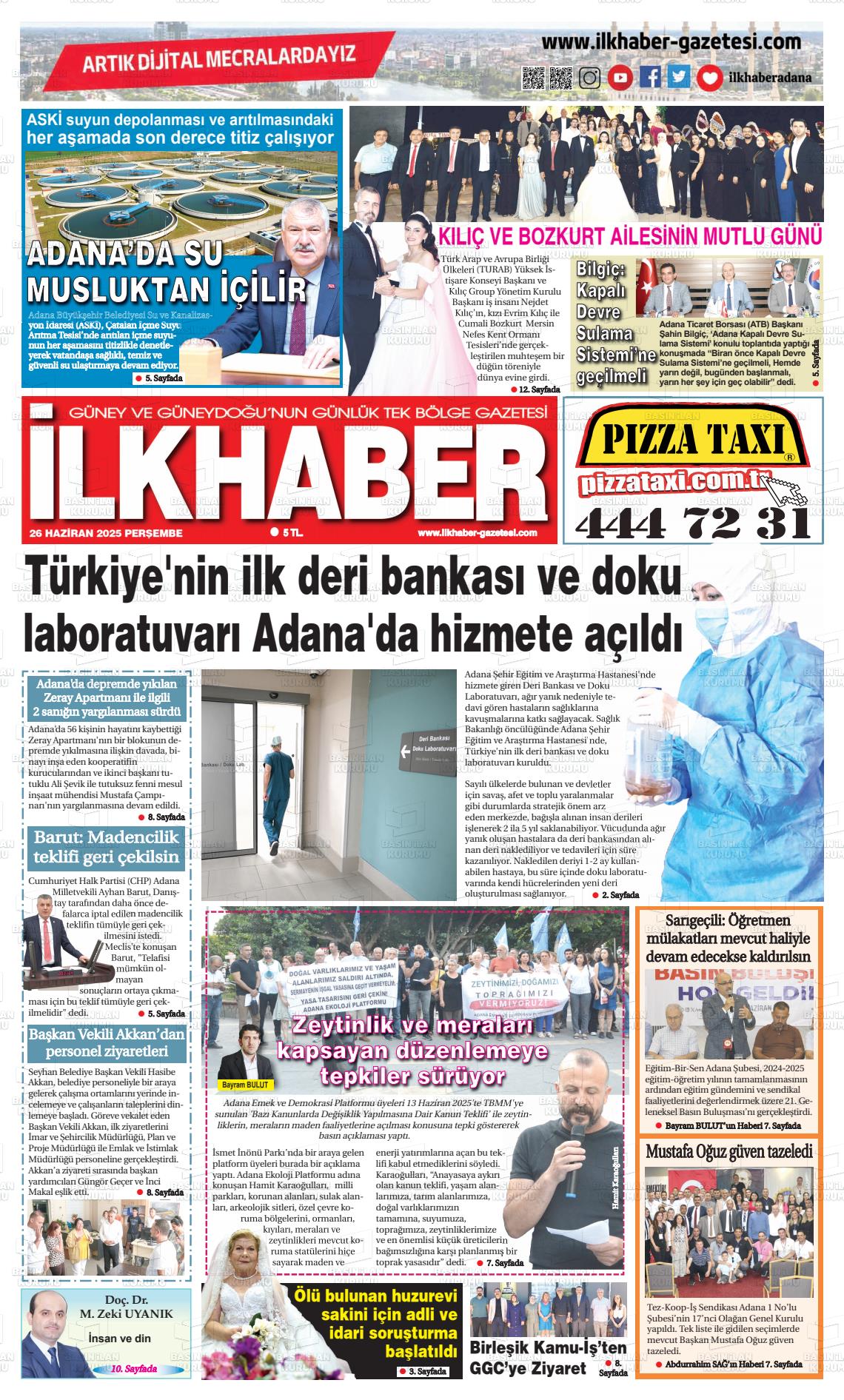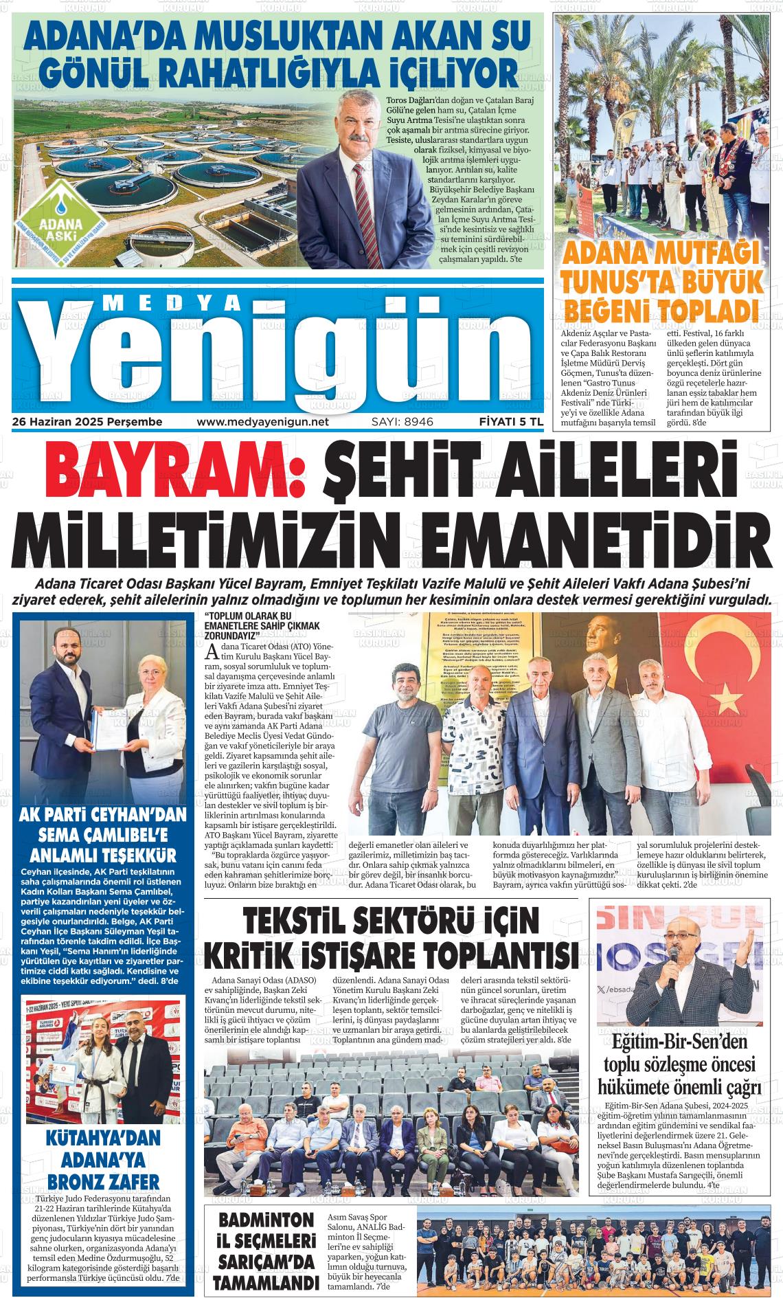 Adana Yerel Gazeteleri 14 Aralık 2025, Pazar Günü Manşeti