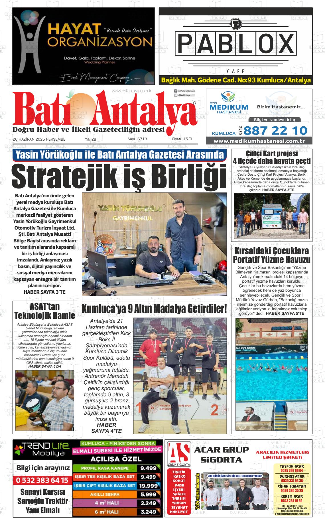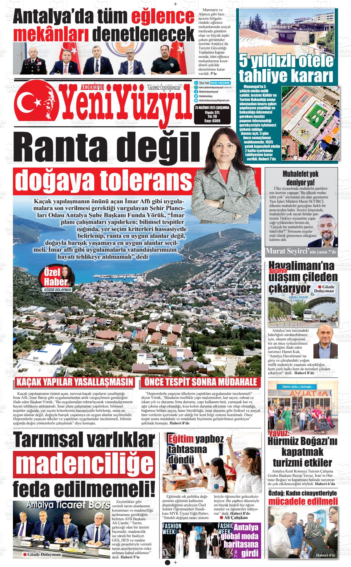 Antalya Yerel Gazeteleri 13 Aralık 2025, Cumartesi Günü Manşeti