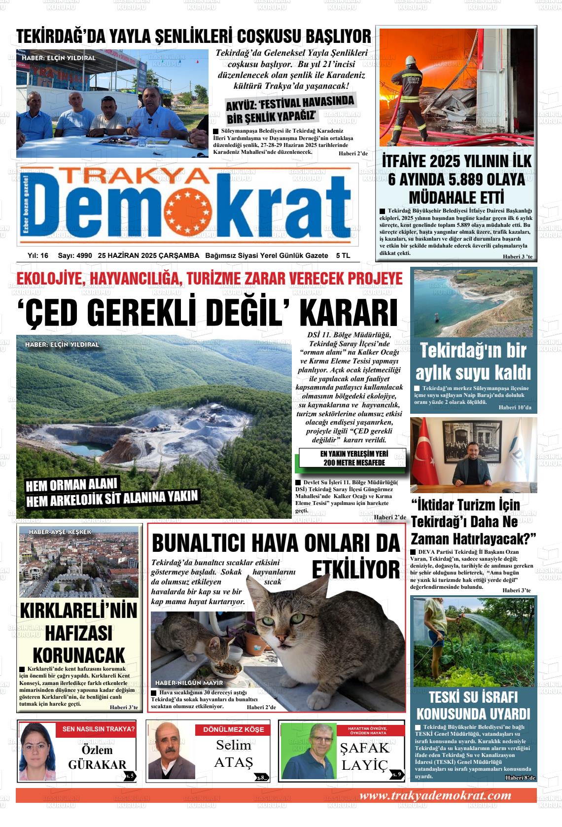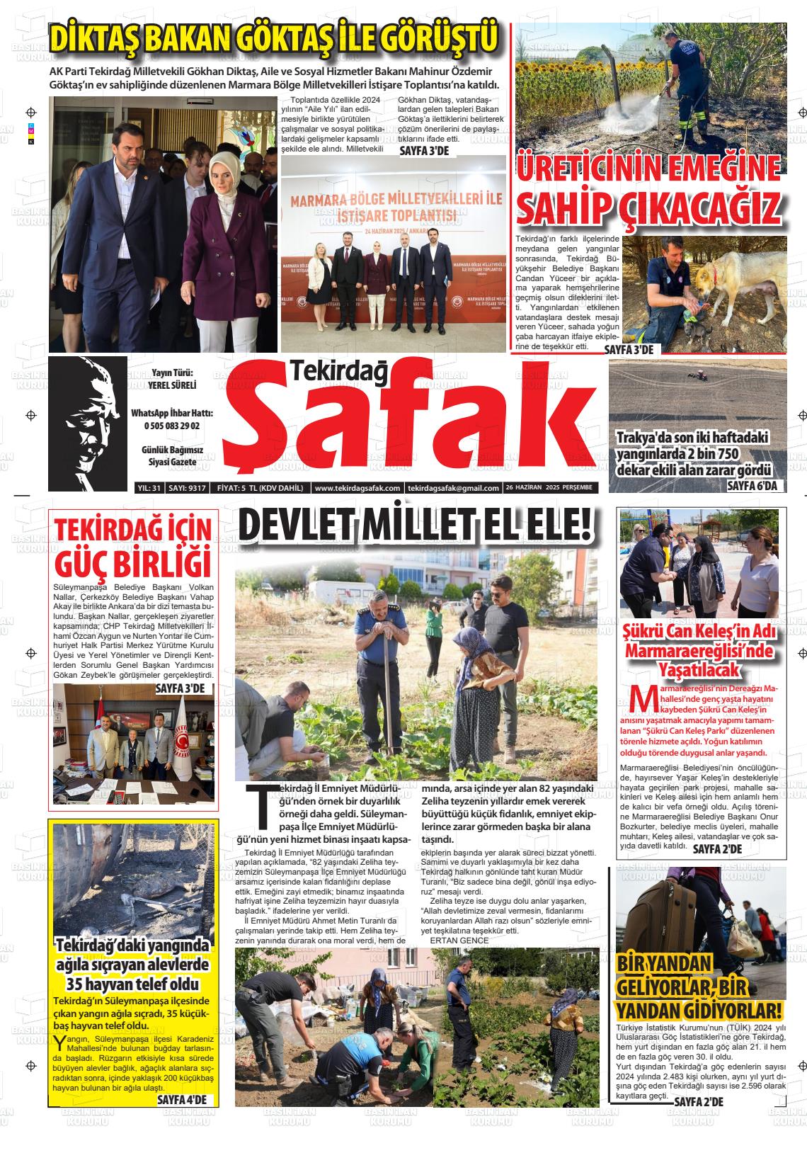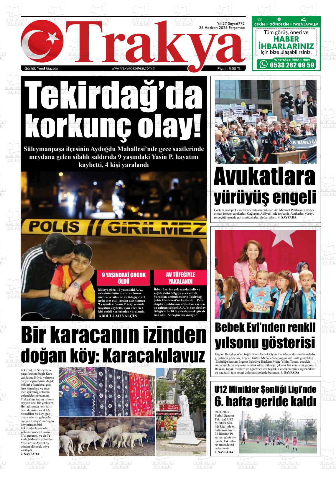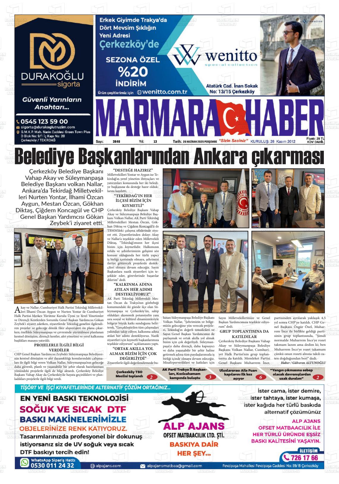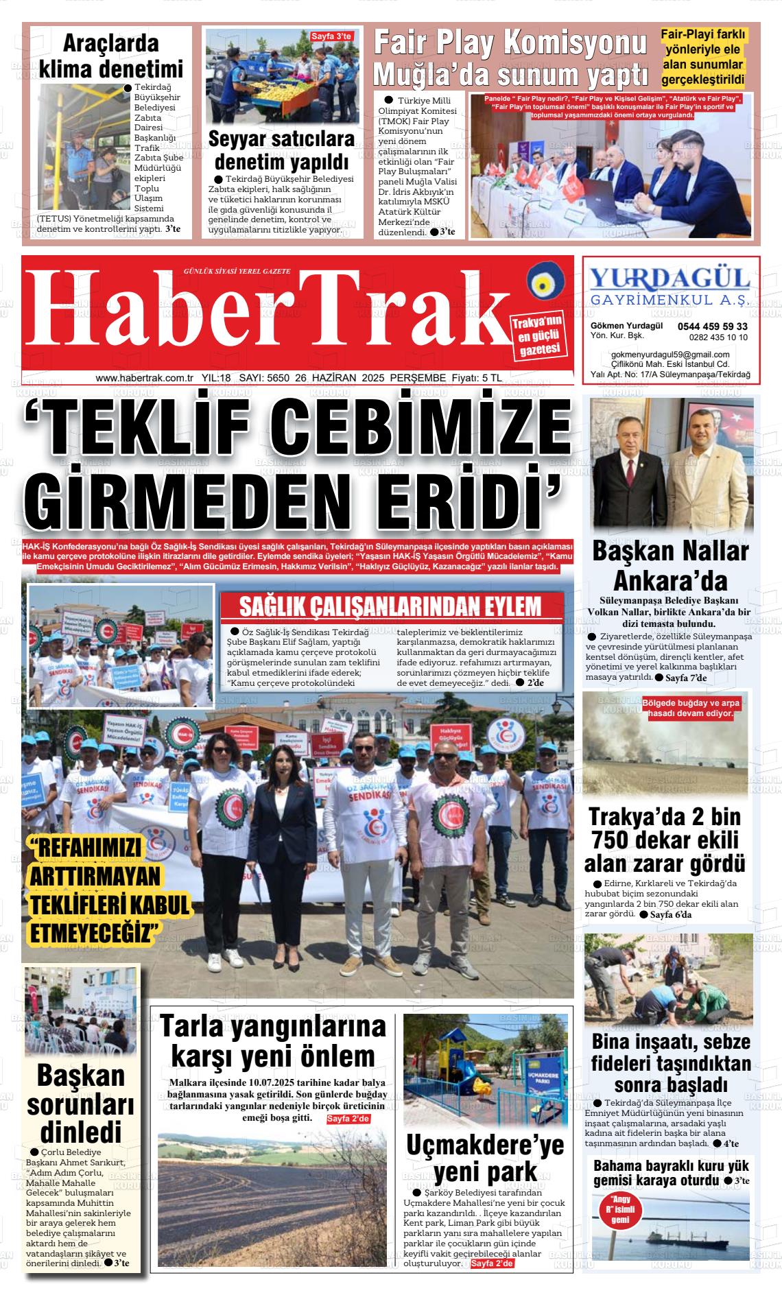 Tekİrdağ Yerel Gazeteleri 15 Aralık 2025, Pazartesi Günü Manşeti