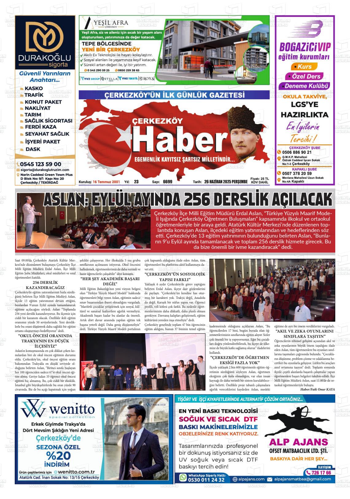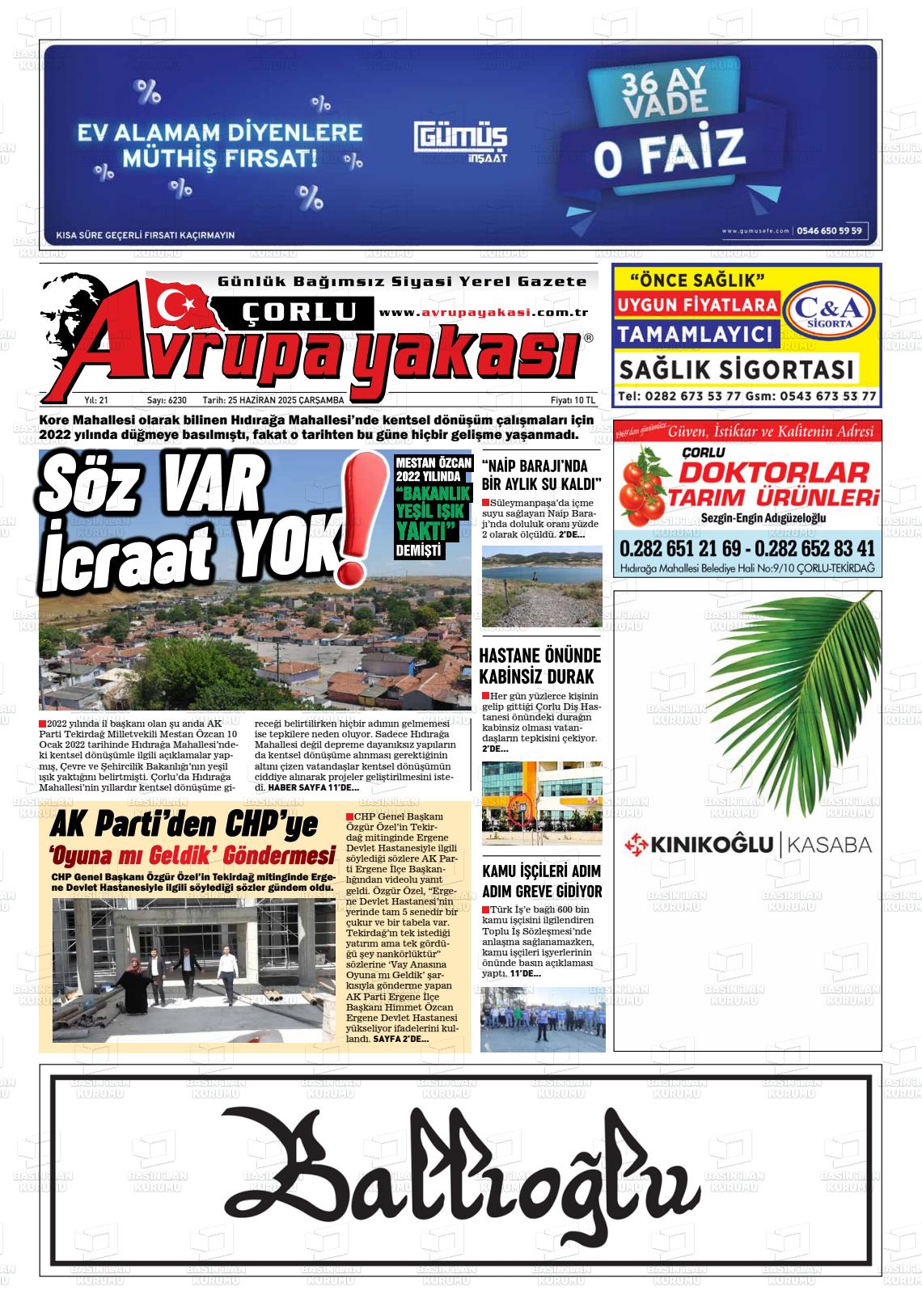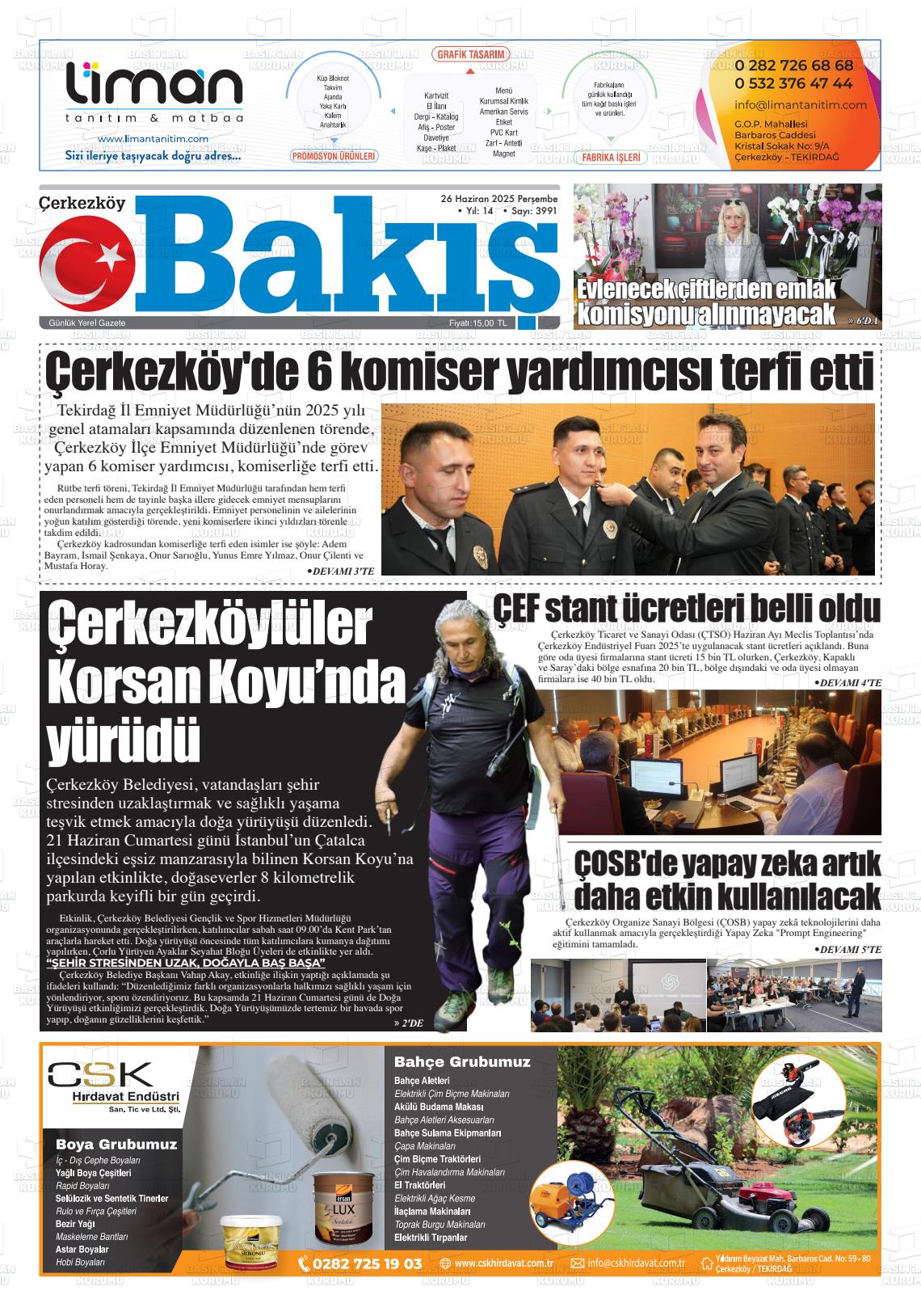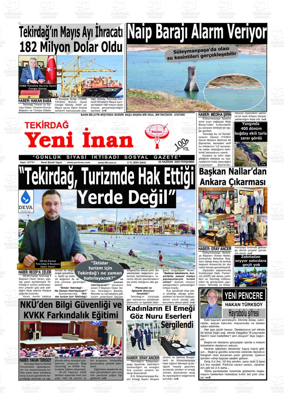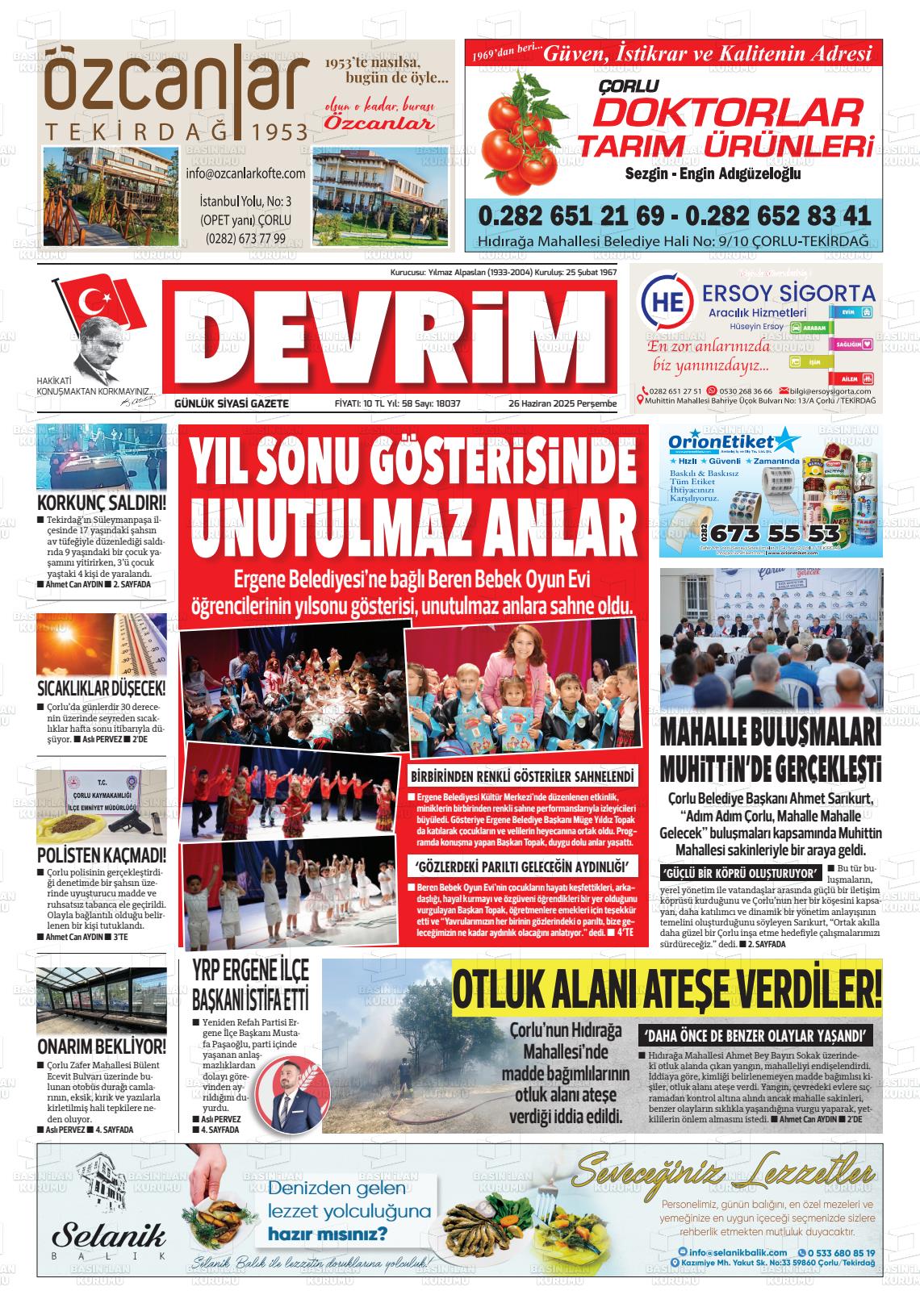 Tekİrdağ Yerel Gazeteleri 15 Aralık 2025, Pazartesi Günü Manşeti
