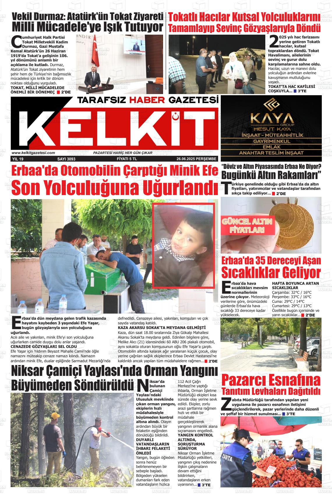 Tokat Yerel Gazeteleri 14 Aralık 2025, Pazar Günü Manşeti